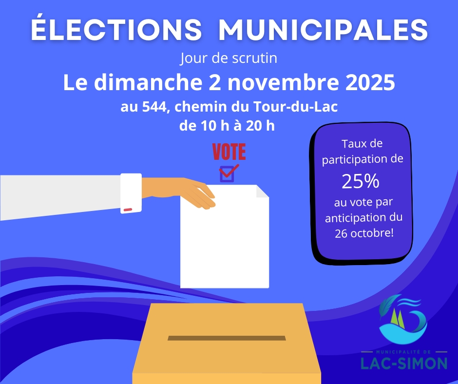 Pour votre information, 411 électeurs ont déjà voté pour un taux de participation de 25% au vote par anticipation du 26 octobre.