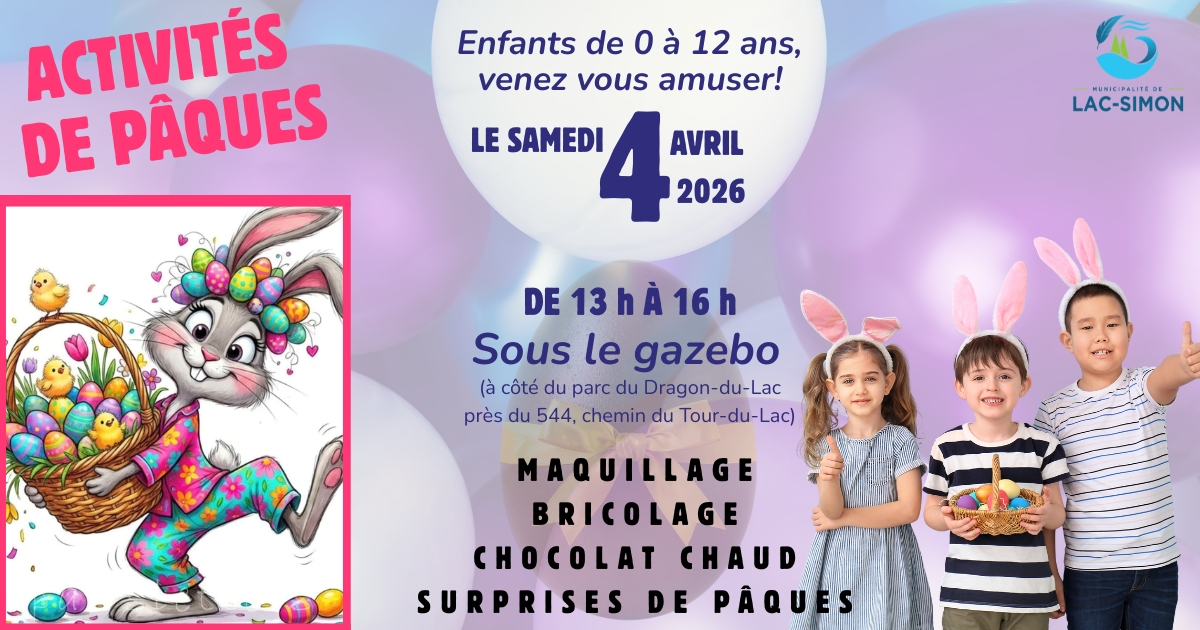 Activités de Pâques pour les enfants, le samedi 4 avril 2026!